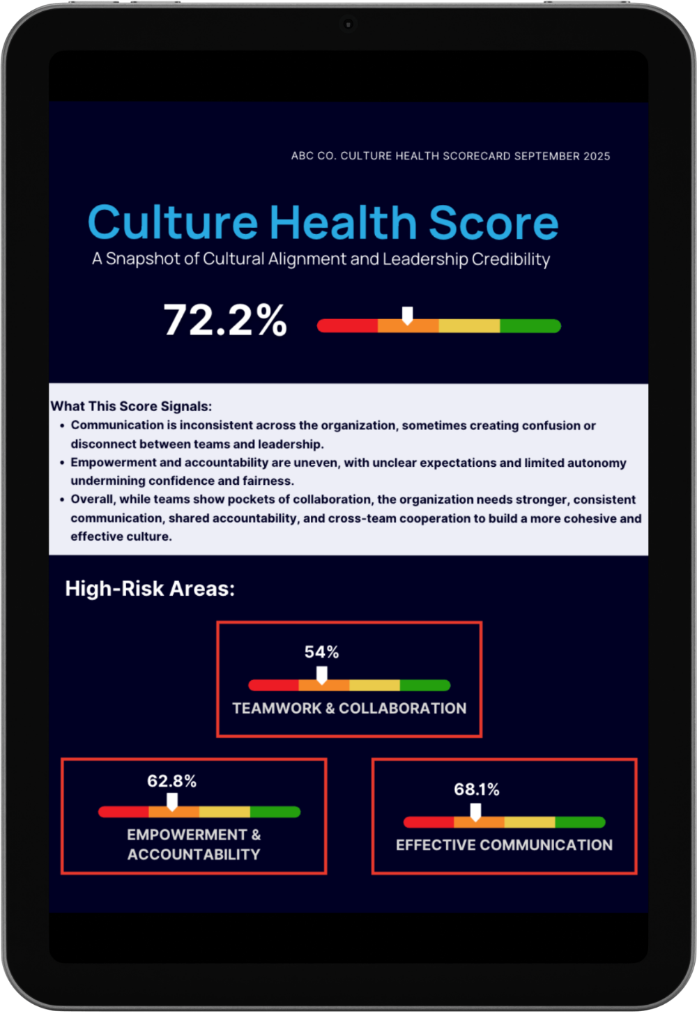 ✅ The Culture Health Scorecard™ closes that gap by giving you measurable clarity leaders trust.